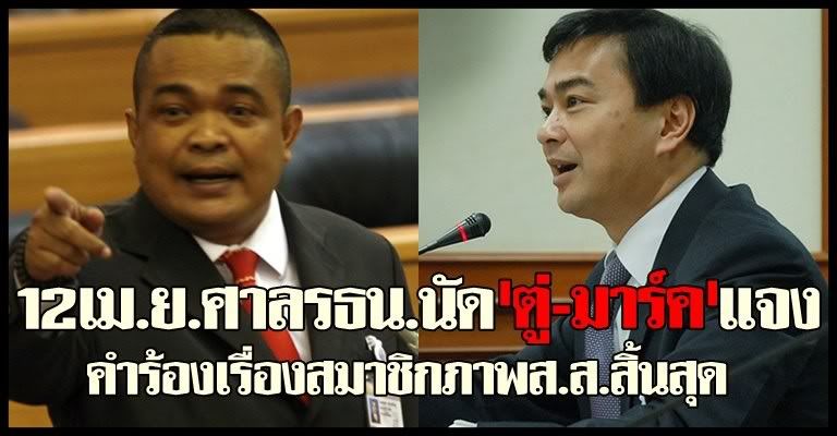 กรณีสมาชิกภาพการเป็นส.ส.ของนายอภิสิทธิ์ เวชชาชีวะ หัวหน้าพรรคประชาธิปัตย์ และนายวรงค์ เดชกิจวิกรม ส.ส.พิษณุโลก พรรคประชาธิปัตย์ สิ้นสุดลงตามมาตรา 91 ประกอบมาตรา 106 (6) และ มาตรา 266(1) หรือไม่ และกรณีพล.ต.อ.ประชา พรหมนอก นายการุณ โหสกุล นายสุรชาติ เทียนทอง นายวรชัย เหมะ นายจารุพงศ์ เรืองสุวรรณ นายวิชาญ มีนชัยนันท์และนายจิรายุ ห่วงทรัพย์ ส.ส.พรรคเพื่อไทย สิ้นสุดลงตามมาตรา 106 (6) ประกอบมาตรา 265 (1) หรือไม่