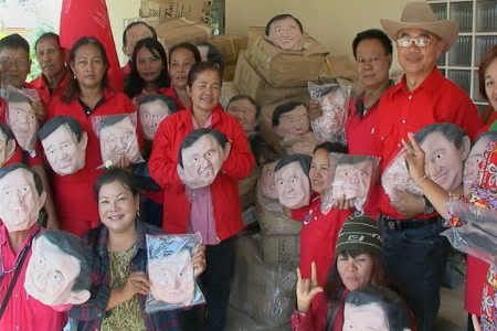 แกนนำเสื้อแดงอีสานใต้แจกหน้ากากทักษิณ 5 หมื่นชิ้น สวมใส่ไปรถน้ำดำหัวอดีตนายกที่เขมร