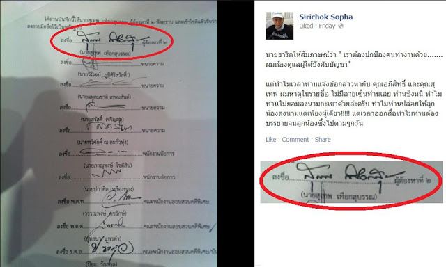 เมื่อไม่กี่วันก่อนคุณ Sirichok Sopha ออกมาโวยวายว่าผ่าน FB ว่า "ทำไมมีแต่ลายเซ็นลูกน้องคุณธาริต ? คุณธาริตไปไหน ?"