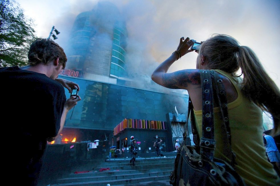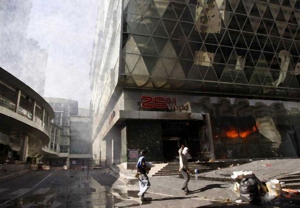 ภาพทั้งหมดนี้ เป็นภาพเหตุการณ์ภายนอกห้าง... ส่วนภายในต้องไปดู กล้องวงจรปิดของห้างที่ปล่อยกันออกมา จุดแรกที่ไฟไหม้ บริเวณนอกหน้าห้าง Zen ไฟหน้าห้างเริ่มดับแล้ว
