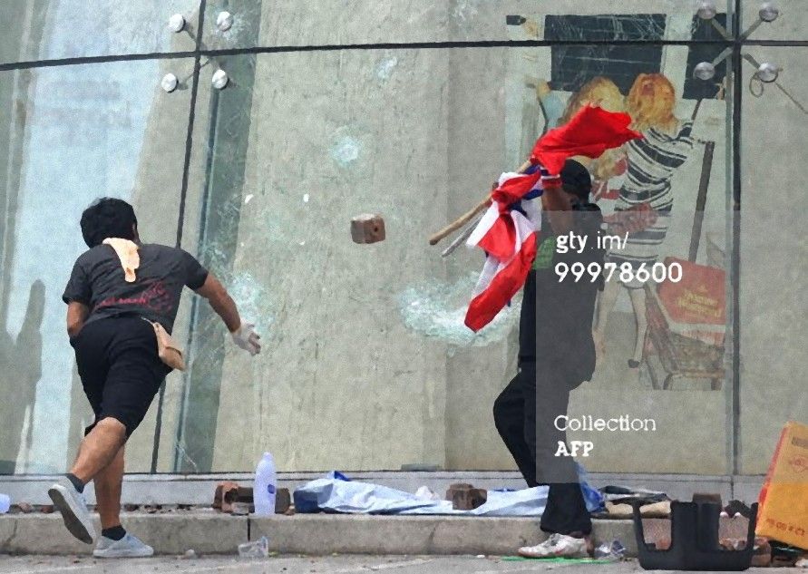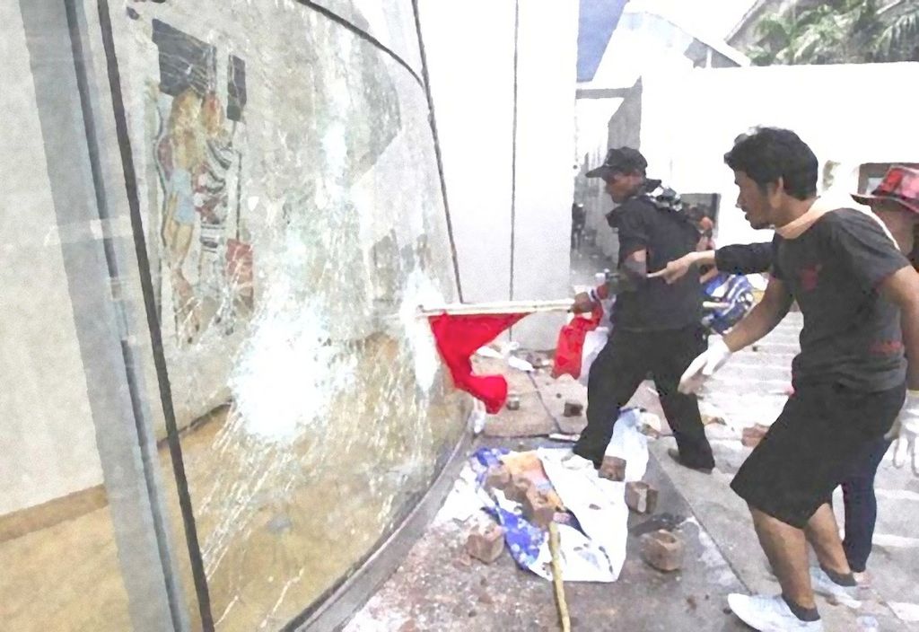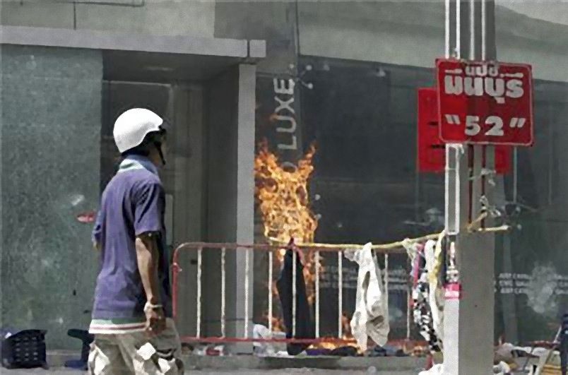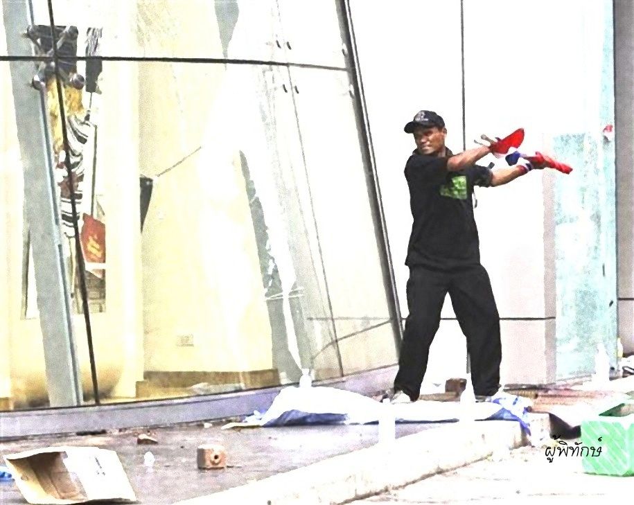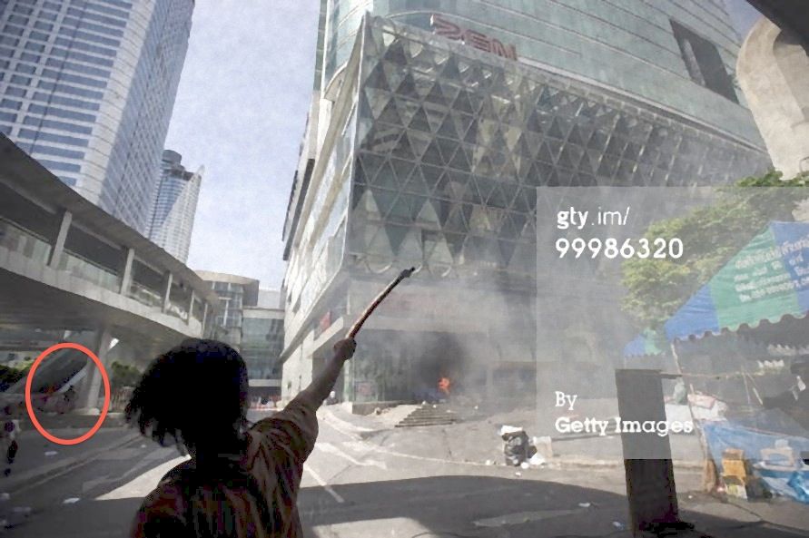 คนทางซ้ายเคยเห็นถือไม้ เดินในห้างกับพวกชายชุดดำ ก่อนถูกเผา